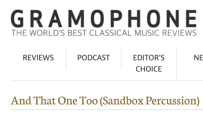 “The shining star of the album are tracks 2 through 5; David Crowell’s Music for Percussion Quartet…The piece is as joyful as it is evocative. Crowell’s use of form is masterful, and every moment of the music captivates the listener. It is a well-balanced, overwhelmingly lovely piece of music.” Olivia Kieffer, Earrelevant (reviewing Sandbox Percussion’s album And That One Too)