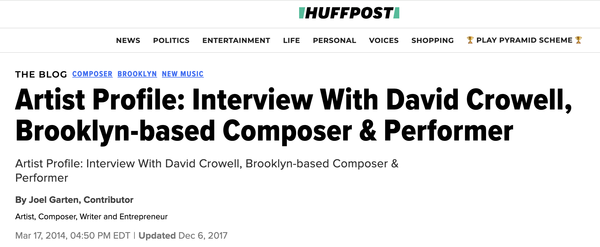 “Crowell focuses his integrity most upon what what he can shape most effectively, where his ear goes, where the sound goes, on how he develops a sonic community. In tune with that, like Miles Davis or Steve Lacy, he’s openly generous in acknowledging his sources, and from this intersection he searches for something new, unique to his auditory & imaginative position. David Crowell deserves a lot of respect for trusting his own path and for really doing something with it. His music, and its evolving musical language, is worth following and listening forward to.” Patrick Brennan, Arteidolia, full article here.